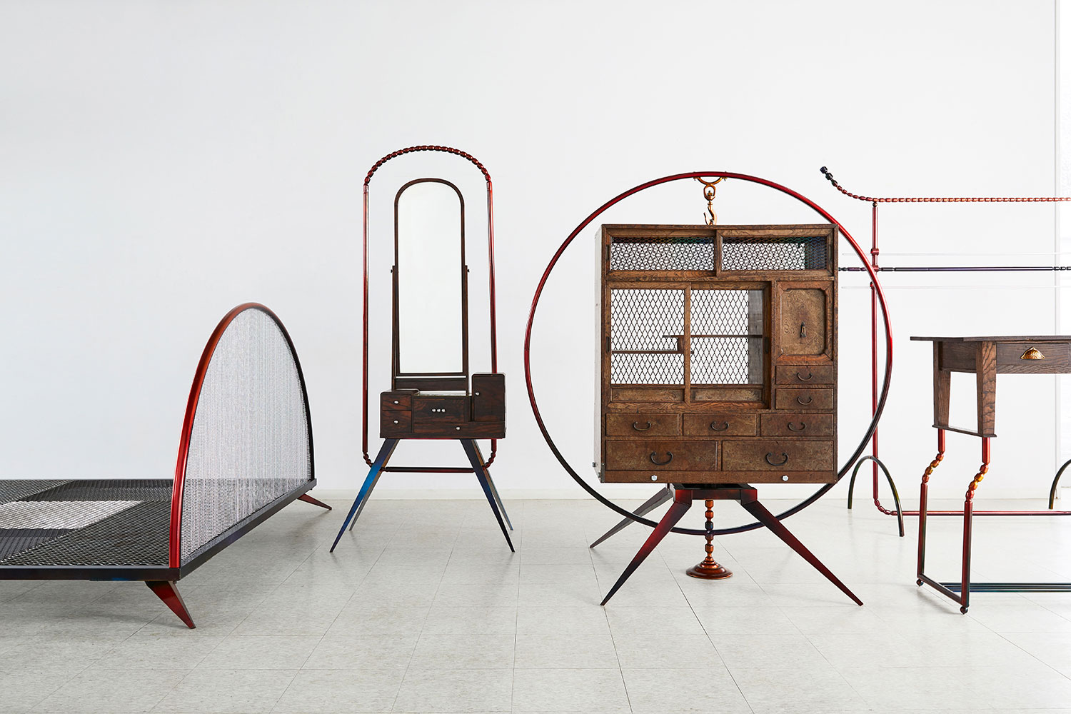 Tokyo Monogatari Kagu Series. 2022. Antique furniture, iron, enamel paint.