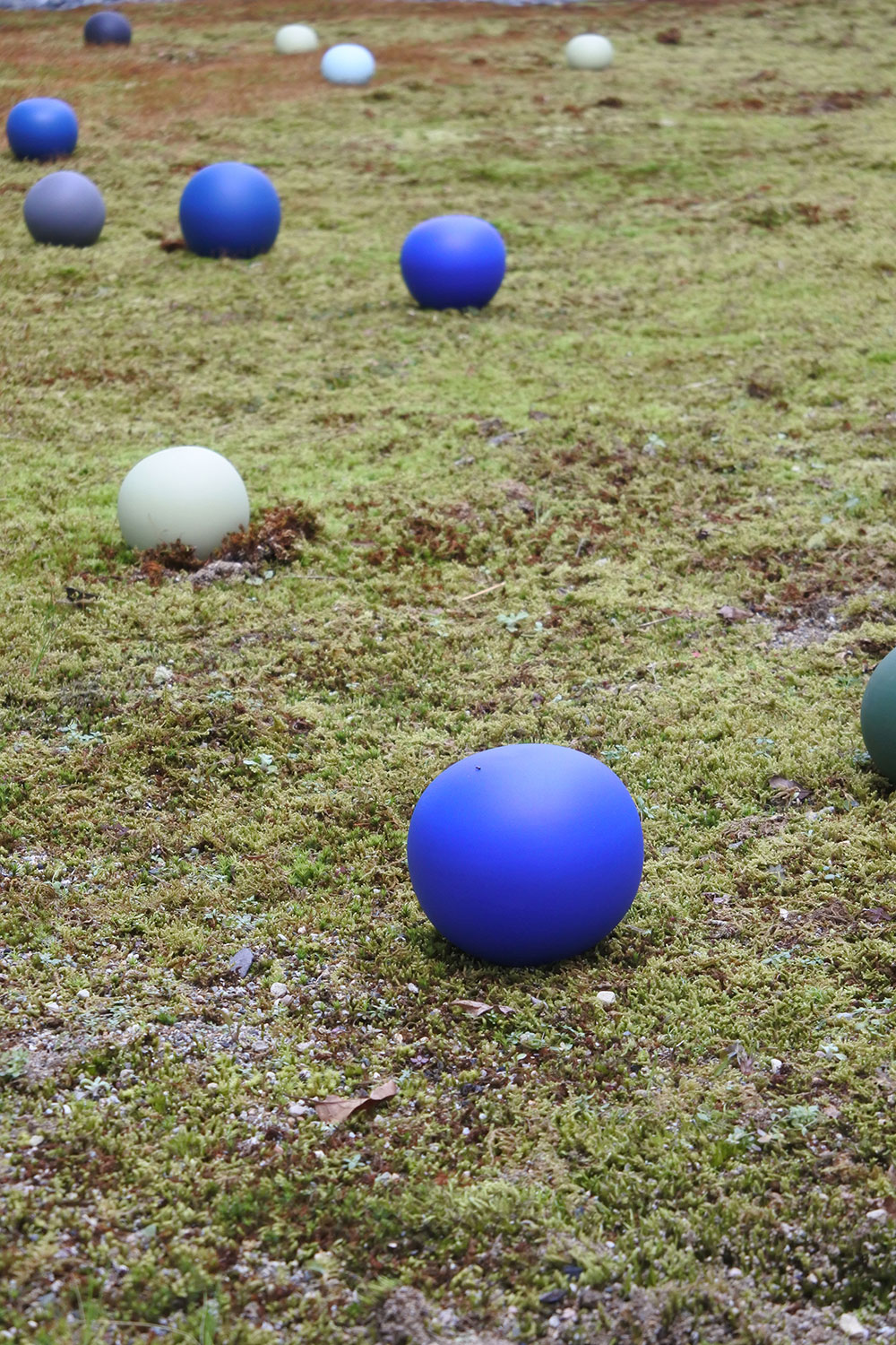 Spheres. 2021. Porcelain. Installation view from No Man’s Land—The Future of Ceramic Art, the Unseen Beyond the Horizon, Museum of Ceramic Art, Hyogo, 2021.