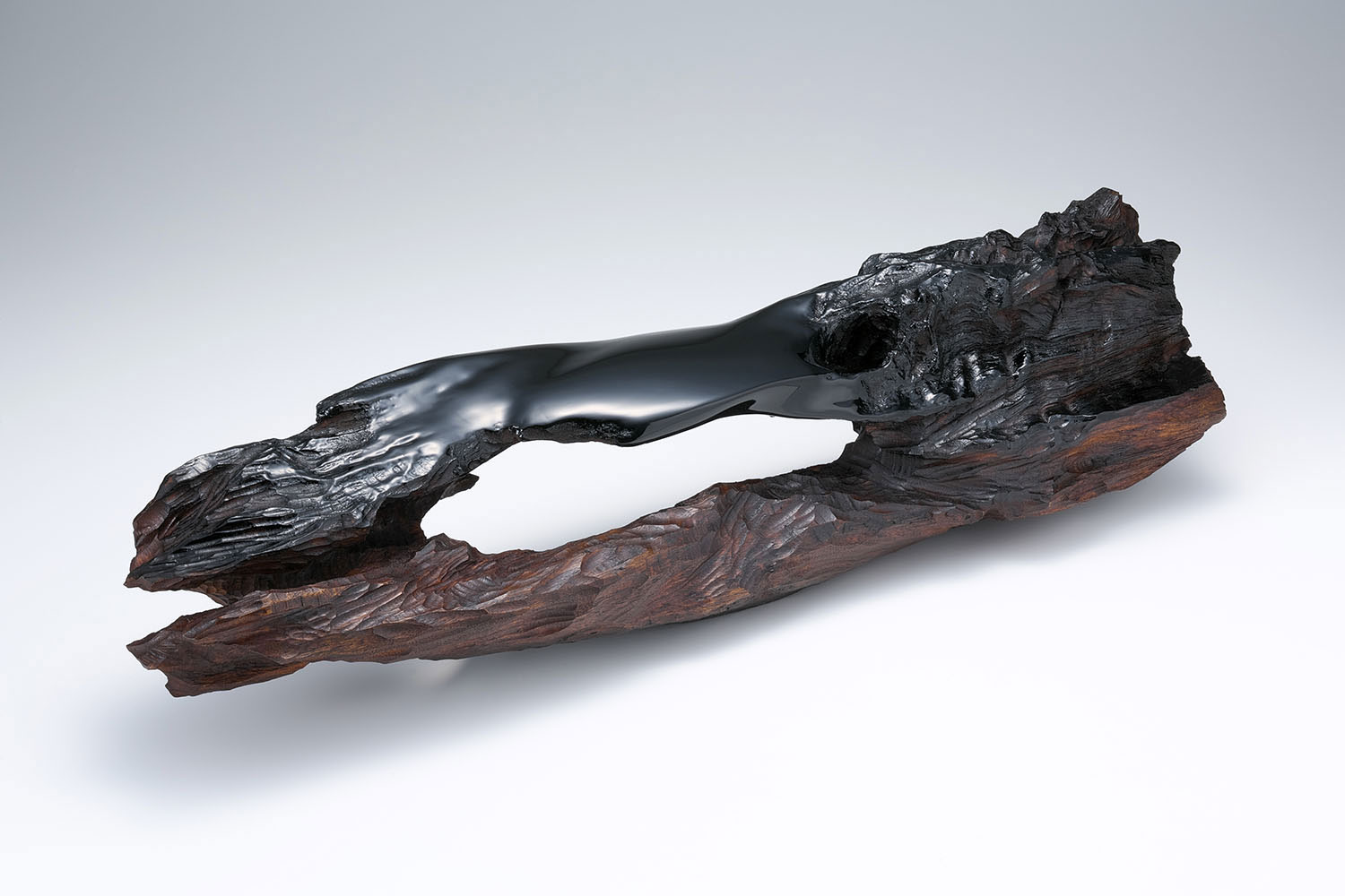 Fusion 21-03. 2021. Camphor wood, Hemp, lacquer (urushi). H. 15, W. 63, D. 17 cm.
